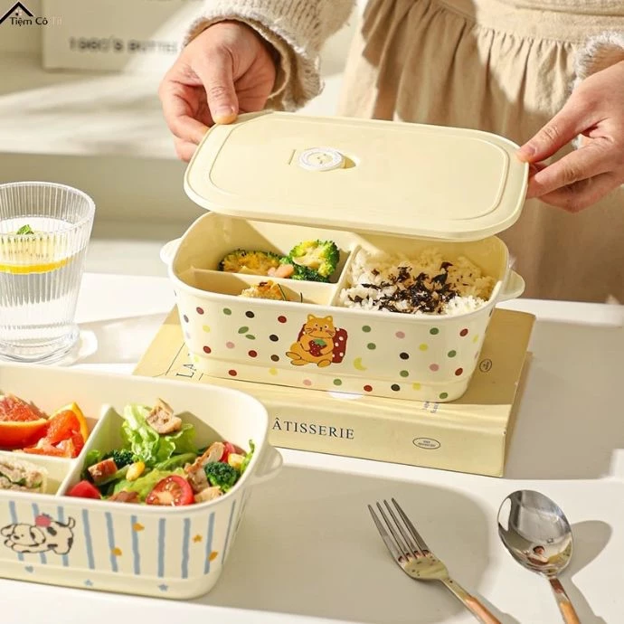 Hộp Đựng Thực Phẩm Gốm Sứ 3 Ngăn 1100ML