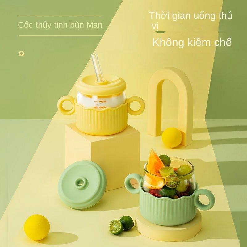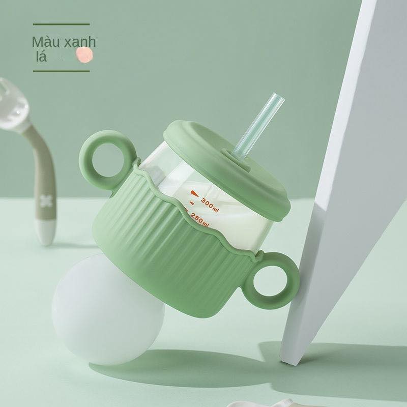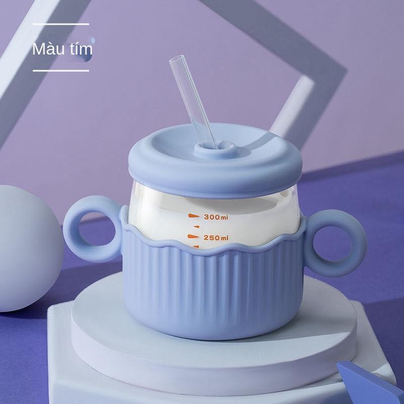 Cốc Thủy Tinh Uống Sữa Chống Sốc Có Ống Hút