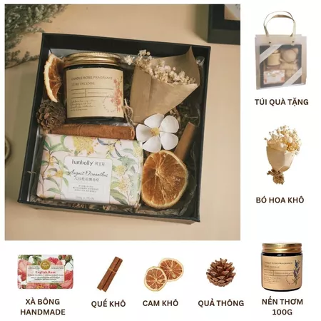 Set quà nến thơm 10 món mix tự chọn với 5 mùi hương kèm gấu