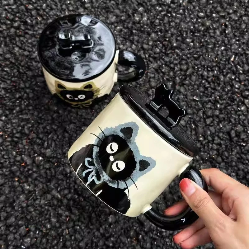 Cốc Sứ Mèo Dễ Thương Có Nắp